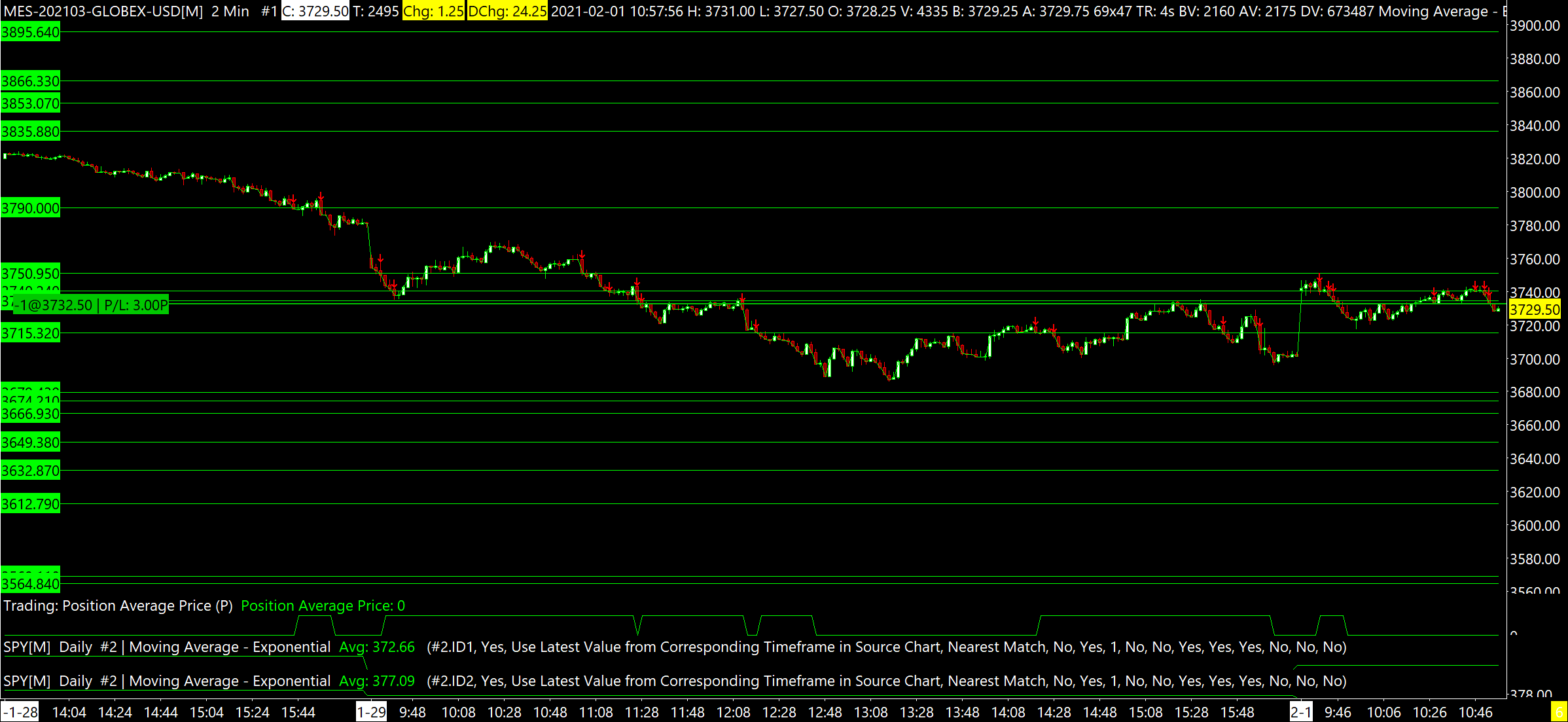 See attached image file. I am running in Sim mode. Trade Position Average Price does not seem to work in real time. In backtests it works every time. If I close this chartbook and re-open the TPAP will calculate correctly and stay until parameters call for a change. I have other charbooks which utilize TPAP and they seem to work fine real time and backtest. I cannot see a reason why this does not work when Sierra clearly recognizes that there is an actual trade position. Thanks. http://www.sierrachart.com/image.php?Image=1612195077185.png |