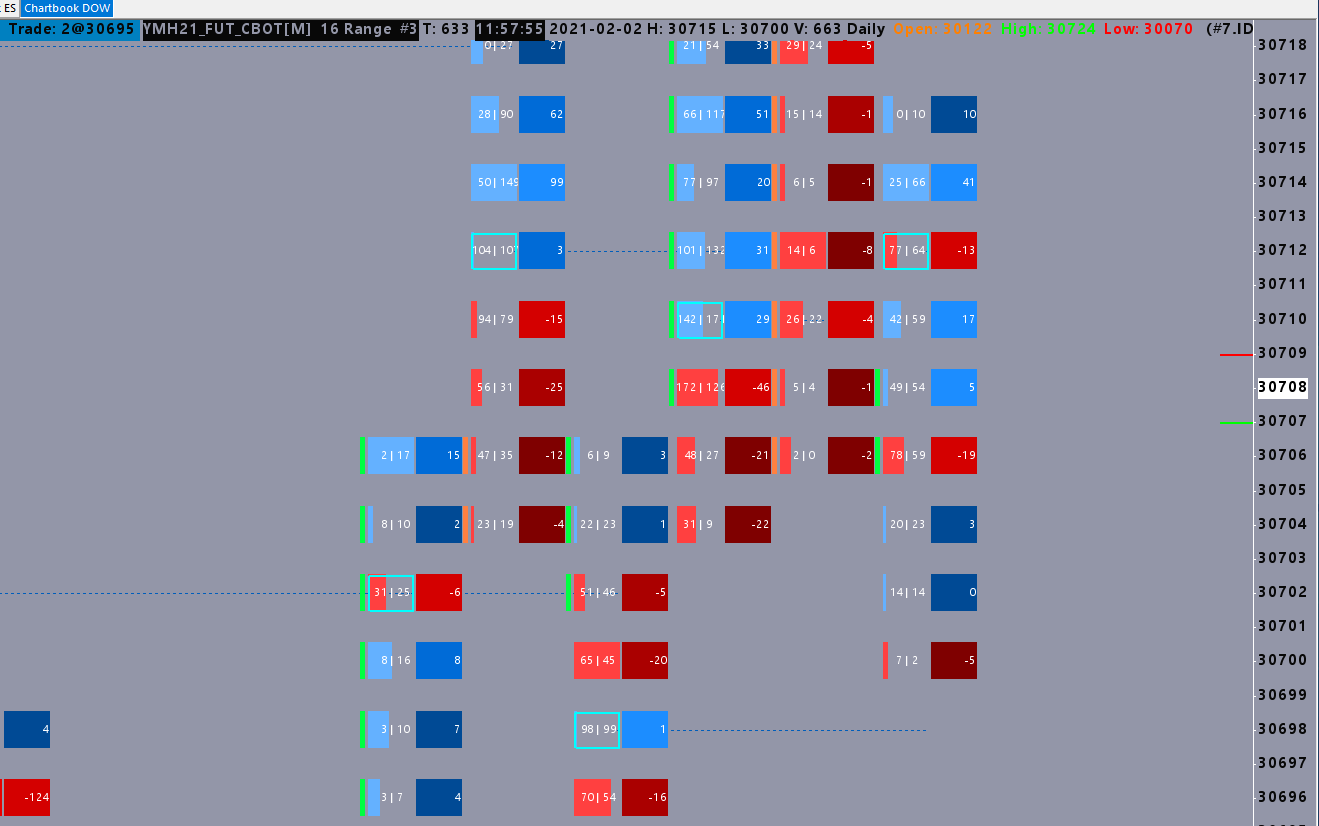 Hello I have a problem with my chart. sorry but my english is bad. I trade with the footprint chart but in the YM it only shows the order in every second price. see photo which I have attached. have I overlooked something here in the settings? |