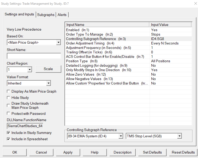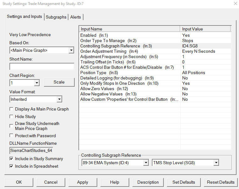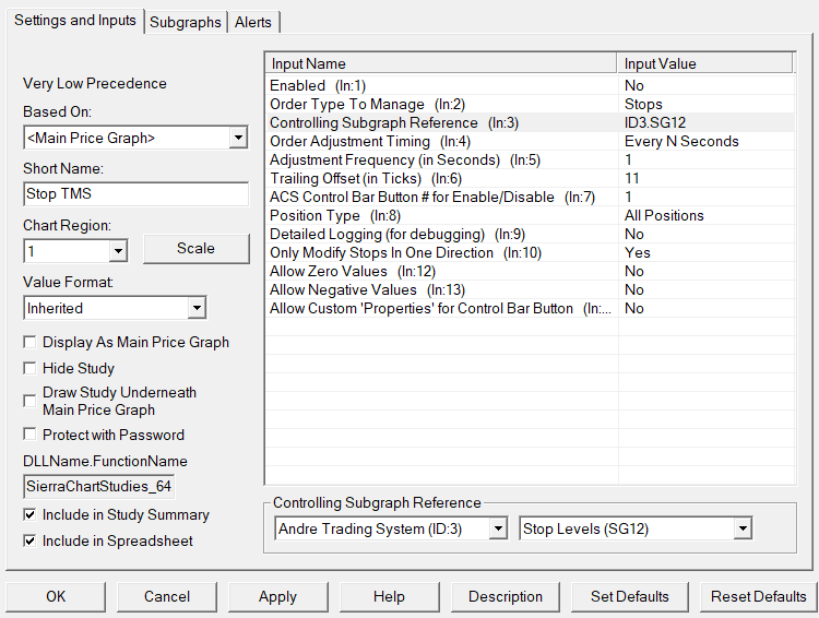 Hi Sierra Chart Engineers, I am sorry to re edit my question. I spent the last two days reading documentation and blogs on TMS but I cant get it to run how I'dlike to. Basically, I am trying to use a stop from a study (i.e. using TMS for the stop) and the fixed targets from trade window. While the stop works, the targets do not appear if an order entry is triggered. I tried to set up target columns in the spread sheet and use TMS for these as well, but once an order is triggered they show levels which are not from the referenced column in the spreadsheet or the trade window and I can't make out where these levels come from. Any input and help on the correct way to set up/connect trade window and TMS is greatly appreciated. Kind regards, Andre Date Time Of Last Edit: 2021-02-05 12:31:49