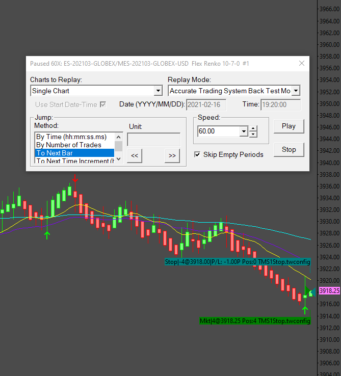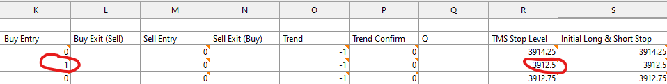 Hi John, I hope you are well. I did some replaying and i can't figure out what is preventing TMS not to take action. I changed the above Stop trigger as I thought the problem might be that the stop only gets triggerd if $J$8<>0. However, this does not solve the problem as you can see in the attched screenshots. As said above, cell R3 is intended to feed the stop levels to TMS. Attached, you will see the levels in R3 vs what is happening in the replay. Again, any help is SUPER appreciated as I am completly stuck and read all threads and documentation. Kind regards, Andre Date Time Of Last Edit: 2021-02-17 12:27:03