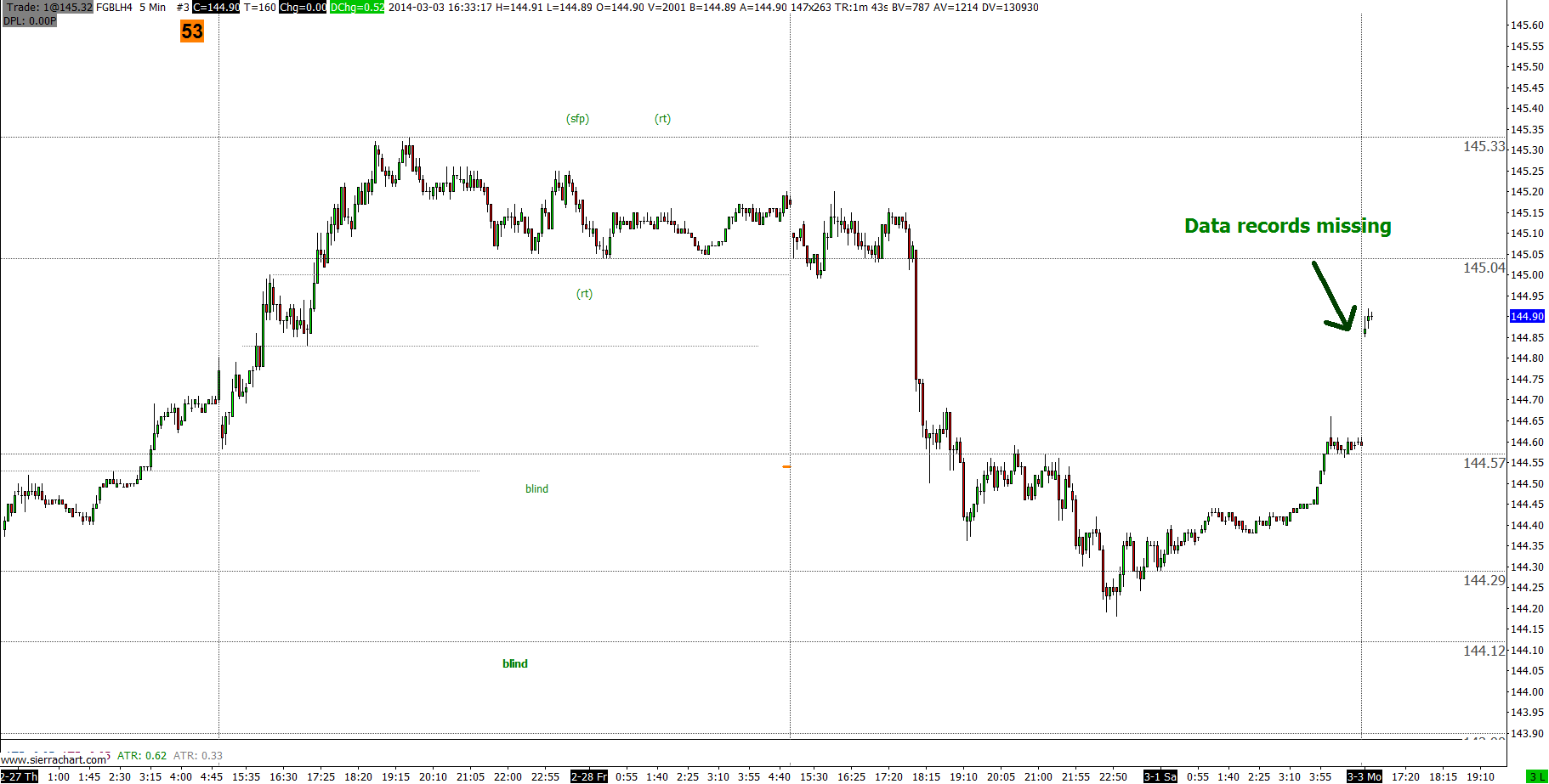 This problem is now resolved and the missing data has been restored. Follow the instructions in help topic 7.1 here to download the missing data: http://www.sierrachart.com/index.php?l=doc/helpdetails7.html#RetryDownloadDataInChart Sierra Chart Support - Engineering Level Your definitive source for support. Other responses are from users. Try to keep your questions brief and to the point. Be aware of support policy: https://www.sierrachart.com/index.php?l=PostingInformation.php#GeneralInformation For the most reliable, advanced, and zero cost futures order routing, *change* to the Teton service: Sierra Chart Teton Futures Order Routing |