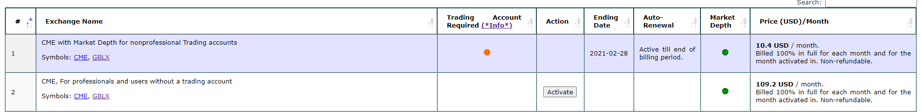 First, you do not need to make a change to the exchange selection until the beginning of next month. So do not activate a new exchange until March 1, 2021. You will continue to get the data through the rest of this month based on the previous selection of CME with Market Depth for Non-Professionals. Second, your question "Since I do have an account, what do I pick?" confuses us. In the beginning of this thread you stated that you wanted to change to being a Professional, and you have updated your agreements to specify that you are now considered a Professional. Therefore, you would naturally need to select the Professional exchange. If we are misunderstanding something here, please let us know. But, as stated above, you do not need to do anything further until March 1. For the most reliable, advanced, and zero cost futures order routing, use the Teton service: Sierra Chart Teton Futures Order Routing |