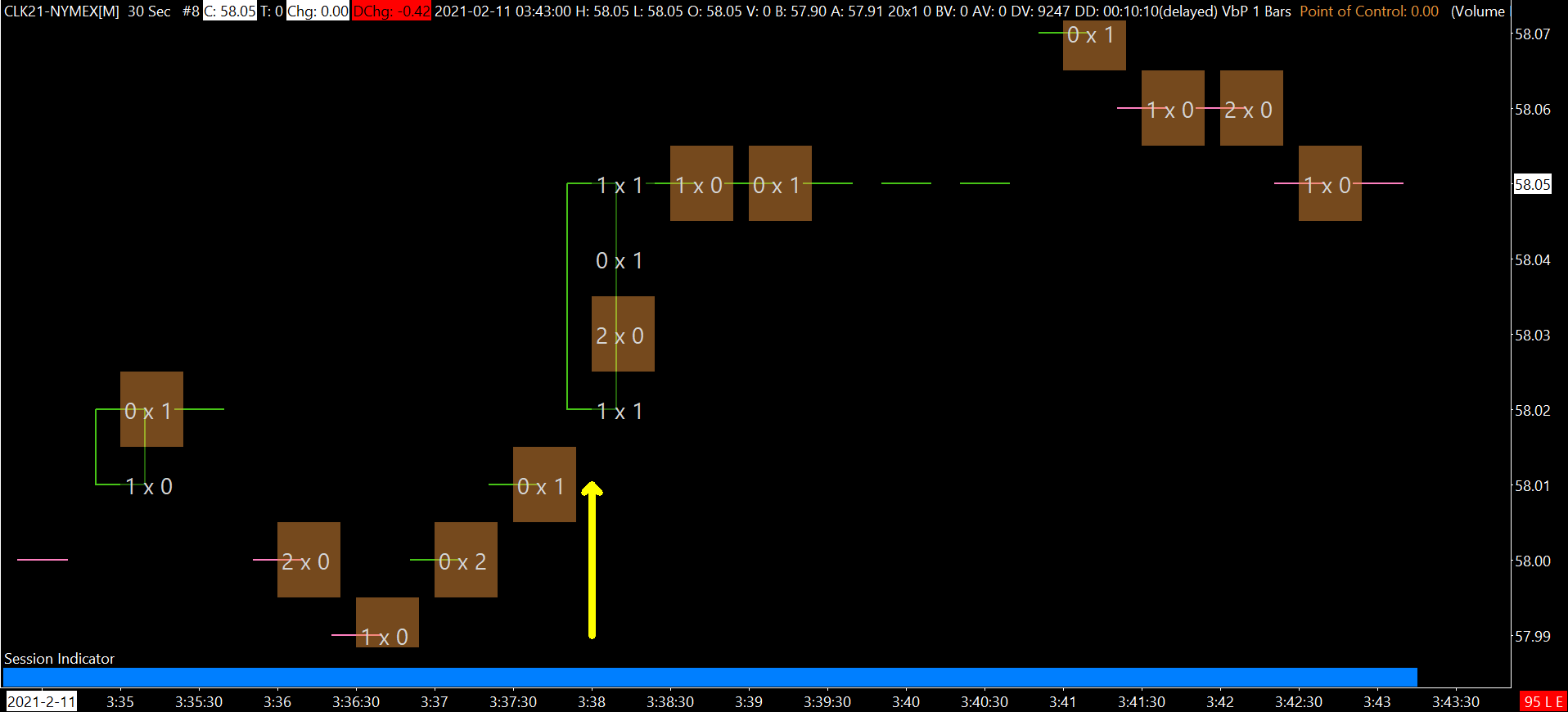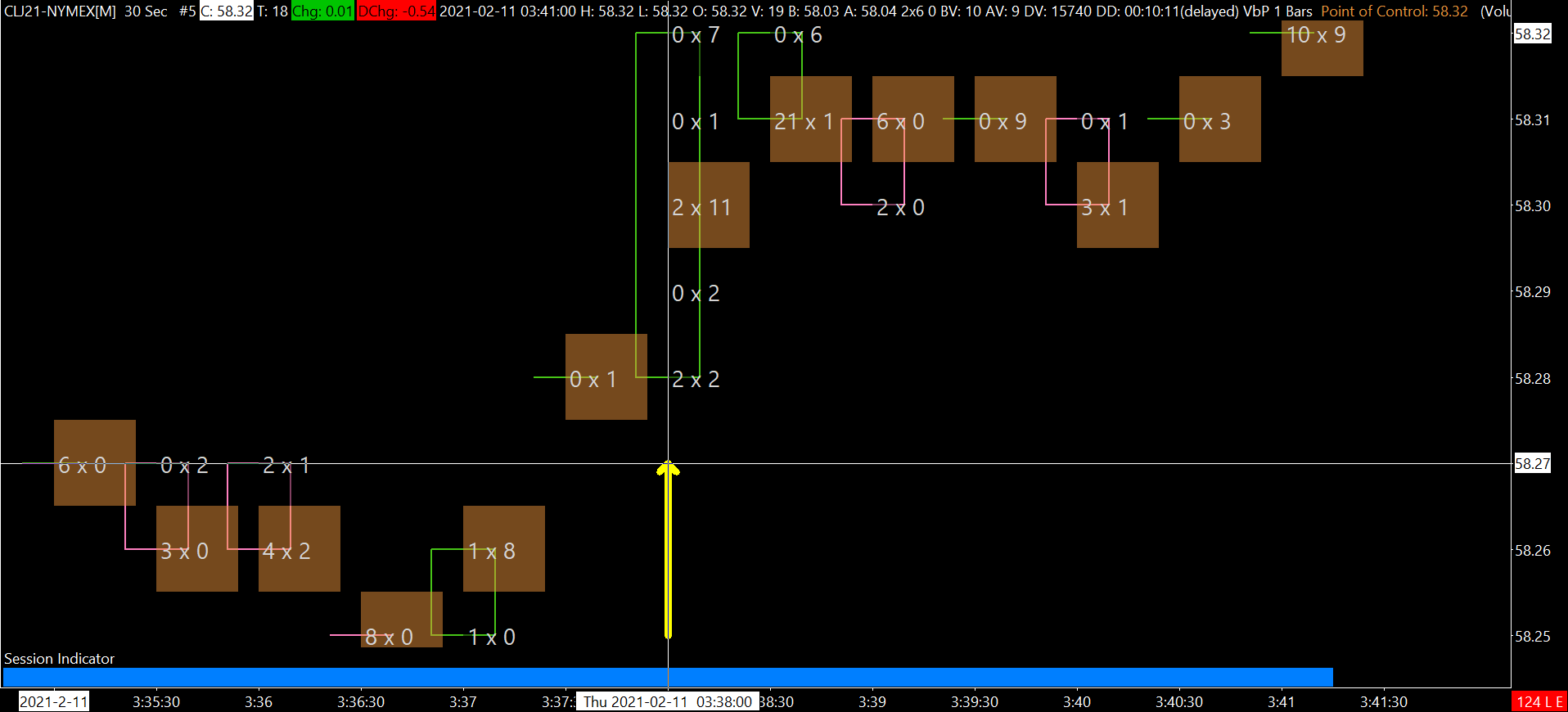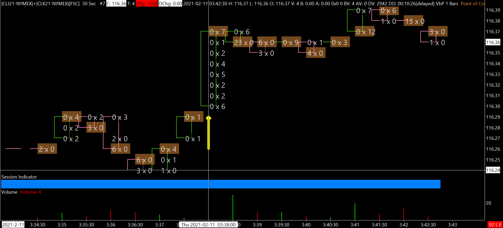This is the combined chart CLJ21+CLK21 below, if you look at the bar highlighted with a yellow arrow. The total volume is 29 for the combined instruments. And notice everything is traded at the offer. The timestamp is 0338, on 30 Sec bars http://www.sierrachart.com/image.php?Image=16130394953.png This is the CLK21 image http://www.sierrachart.com/image.php?Image=1613039664425.png notice there are some bids and offer trades for the timestamp 0338. Total Volume her is 7 Total volume with 4 Bid and 3 Ask Then this is CLJ21 http://www.sierrachart.com/image.php?Image=1613044169956.png The same timestamp the total volume is 27 with 23 traded at the ask and 4 at bid So there is a discrepancy in the total volumes as well as the actual split between bids and offers on the combined instrument. Please let me know if there is something I need to do on my end. Thank you for your assistance. Best wishes |