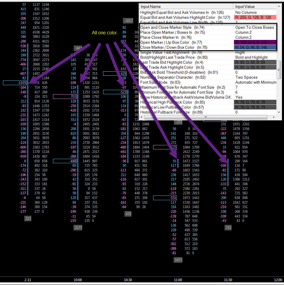I must be missing something. I can only get a one color bar on the numbers bar(see image). These are 30 min. bars.