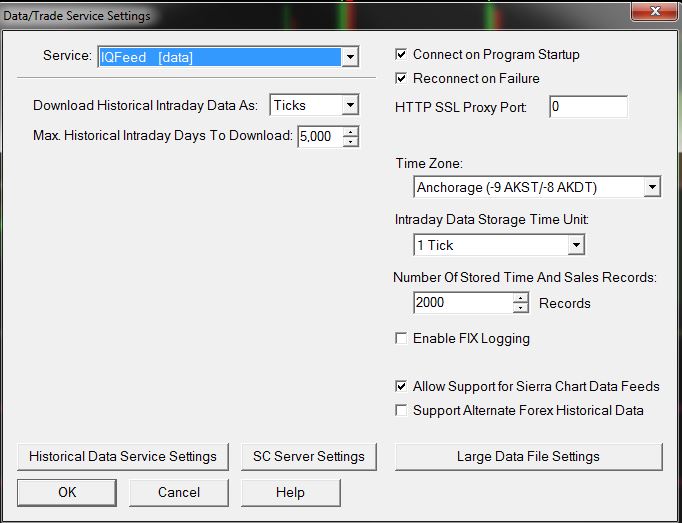 We download the data for that symbol using IQ Feed and we got all of the data. This part shows the area that you are missing: http://www.sierrachart.com/image.php?l=1393465877106.png Go to the chart and select Edit >> Delete All Data and Download (Be sure to use this exact command). You really should get the data. There should not be a problem with this. Also, please be aware that Sierra Chart now offers its own data feed that you may be interested in. Refer to: https://www.sierrachart.com/index.php?l=doc/SierraChartRealTimeFuturesStockDataFeed.php Overall this is a more reliable service compared to IQ Feed since it is built specifically for Sierra Chart. You will also find that the speed at which historical data is provided is many times faster compared to IQ Feed. Let us know if you still see a problem. Sierra Chart Support - Engineering Level Your definitive source for support. Other responses are from users. Try to keep your questions brief and to the point. Be aware of support policy: https://www.sierrachart.com/index.php?l=PostingInformation.php#GeneralInformation For the most reliable, advanced, and zero cost futures order routing, *change* to the Teton service: Sierra Chart Teton Futures Order Routing |