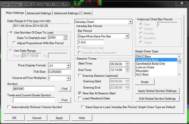Really we do not have anything more to add other than what is documented in help topic 7 here: Http://www.sierrachart.com/index.php?l=doc/helpdetails7.html That is the complete reference on the subject and if you still have difficulty contact IQ Feed because clearly the data is missing from the server. One thing we do notice though is you need to disable the Continuous Contract option in Chart >> Chart Settings for that symbol. It is not needed and should never be enabled for a continuous contract symbol. Should not be causing a problem but definitely do disable it. Sierra Chart Support - Engineering Level Your definitive source for support. Other responses are from users. Try to keep your questions brief and to the point. Be aware of support policy: https://www.sierrachart.com/index.php?l=PostingInformation.php#GeneralInformation For the most reliable, advanced, and zero cost futures order routing, *change* to the Teton service: Sierra Chart Teton Futures Order Routing Date Time Of Last Edit: 2014-02-26 09:24:42