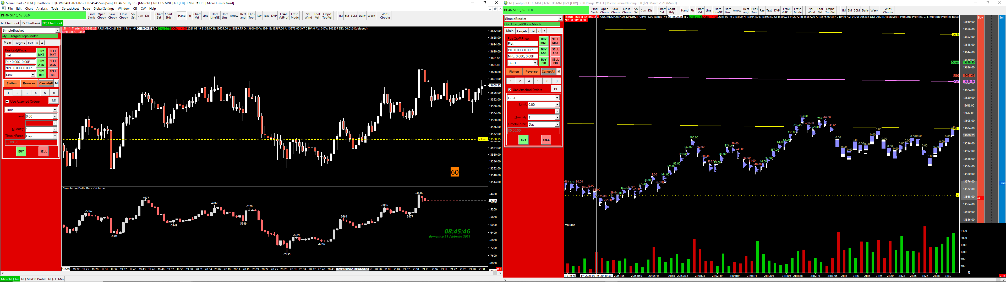 Good morning, I use two monitors for my trading and I have a couple of questions for you. 1.as you can see in screen01.png, the chart on the right side shows the main menu (file, edit, chart etc) but not the sierra chart control bar. In screen02.png (MNQ charts) I have on the right side the sierra chart control bar but not the main menu Why this happens? Is there something I can do to have main menu ad SC control bar at the same time as in the left side of the attached images? When markets are open and I want to add/remove lines, text, tools, studies or change time frames, I have to switch from main menu and SC control bar, depending on the chart I am working on at that moment and it is frustrating (at least) 2.when I use the Windows and Chartbooks (screen03.png), the detached windows on monitor n.2 'comes back home' to monitor n.1. The problem is that when I click on the OK button, Sierra Chart automatically closes itself, simply it shuts down and this happens 100% of the time when I use Windows and Chartbook for one chartbook only but not with the other two chartbooks that I use. And when I restart sierra, nothing has changed, the detached window is still detached. How can avoid this to happen again? thank you |
