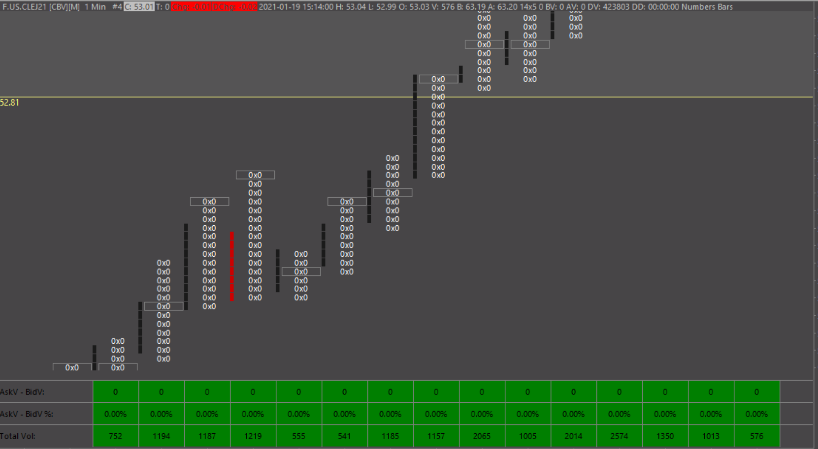 Hello, I have now the Denali Exchange Data Feed and now I often have display errors in the Foodprint Chart. I see only zeros there (see picture). What can be the reason for this? |