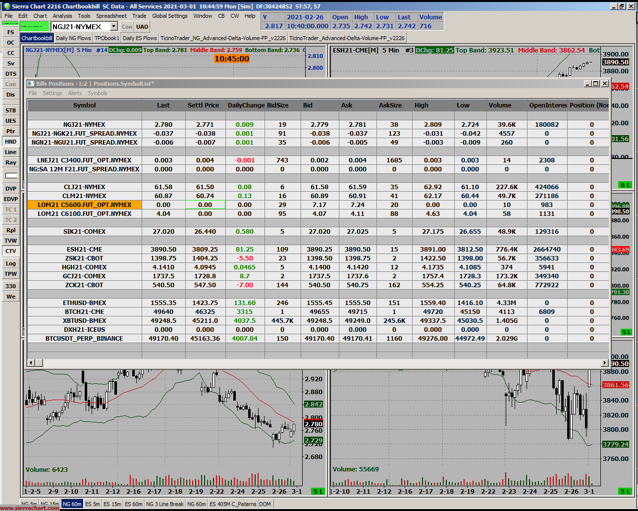 I can't seem to get the Crude option settlement cell to populate. "LO". http://www.sierrachart.com/image.php?Image=1614613501241.png Date Time Of Last Edit: 2021-03-01 15:50:20