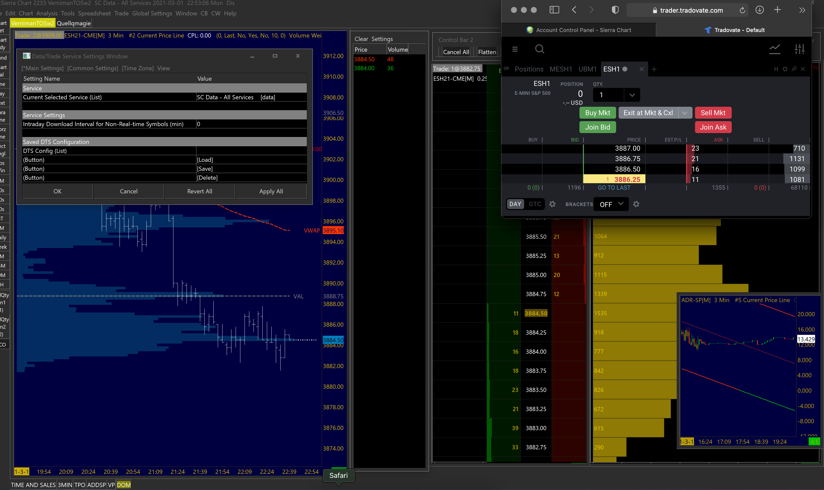 And why is my Denali feed only active for another 16 Days when i have just payed for it Last friday? Somethings really wrong guys The Denali Exchange Data Feed in your case is provided with package 11 and this package of yours ends on 2021-03-17. Unlike in the past, it is not associated with a calendar month. Just make sure you have sufficient credit on your account when it renews:https://www.sierrachart.com/UserControlPanel.php?page=AddAccountCredit You only have the Nymex exchange active at this time but it is a nonprofessional exchange. The reason you are not getting real-time data from the CME Group of exchanges is that you activated the Non-Professional exchange fees, but you have not verified that you have a live, funded, futures trading account, which the CME needs in order to allow you data at the lower priced fees. Refer to the following for instructions on how to connect once a month to your *live funded* trading account to qualify for the lower-priced exchange fees: Real-Time Exchange Data Feeds Available From Sierra Chart: Connecting Only Once a Month to Trading Account to Support CME Group Exchange Fees If you do not have a funded trading account or one with a supported trading service, then refer to this solution: Easy Solution to CME Funded Trading Account Requirement We recommend using the above solution in any case to avoid this problem in the future. Sierra Chart Support - Engineering Level Your definitive source for support. Other responses are from users. Try to keep your questions brief and to the point. Be aware of support policy: https://www.sierrachart.com/index.php?l=PostingInformation.php#GeneralInformation For the most reliable, advanced, and zero cost futures order routing, *change* to the Teton service: Sierra Chart Teton Futures Order Routing Date Time Of Last Edit: 2021-03-02 14:51:10