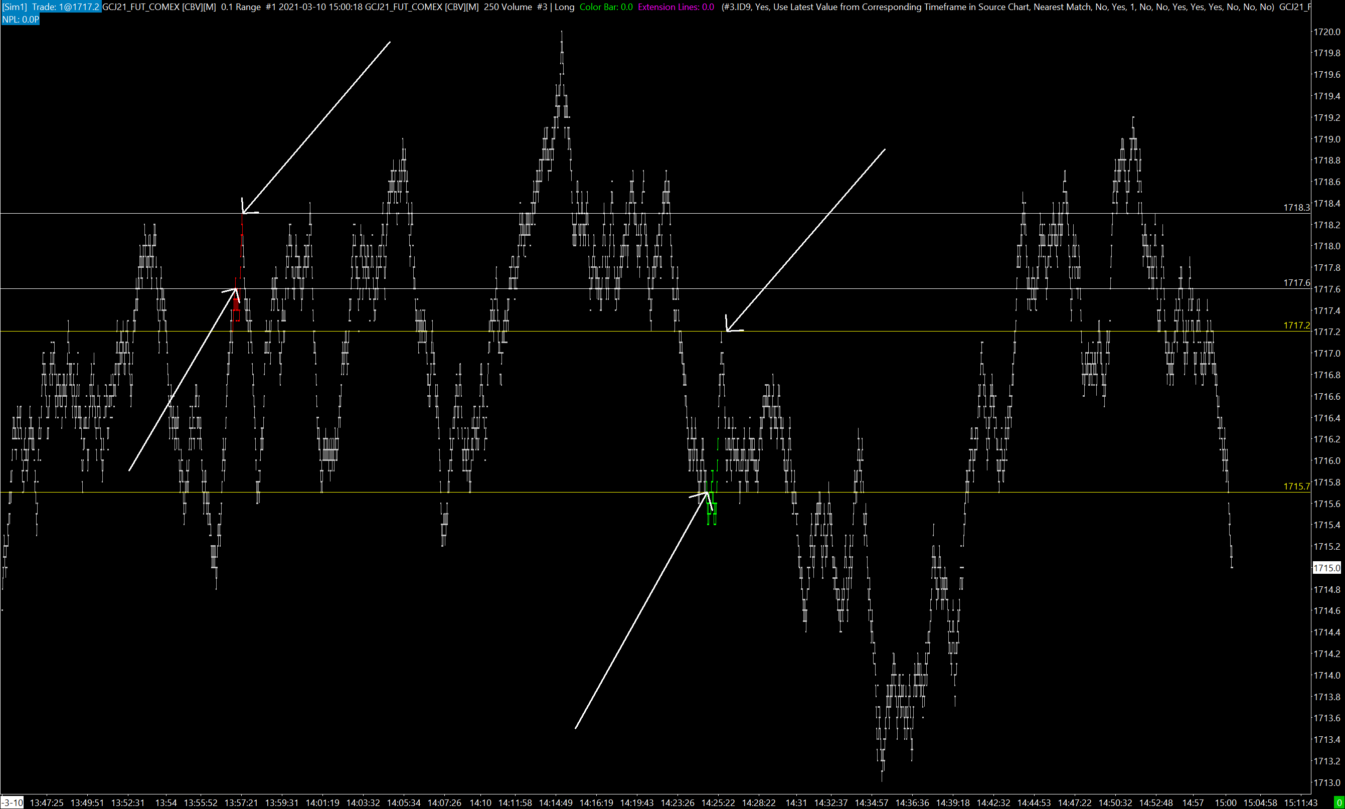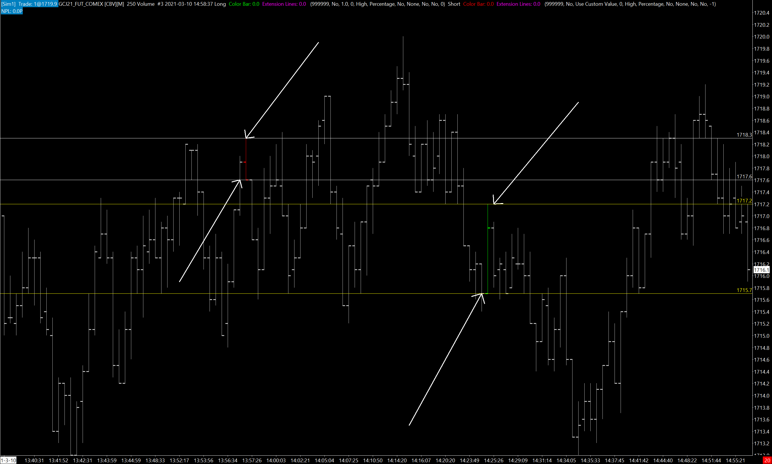 Apologies if it is silly for you, but I'm really confused and wasted too much time because of this. For example below is 250 volume bars, red and green bar have particular L, H, O, C prices and they're colored red and green for reference: http://www.sierrachart.com/image.php?Image=1615390093712.png Then I opened tick chart of the same symbol with Study/Price Overlay study to mark ticks that build the 250 volume bars from first chart: http://www.sierrachart.com/image.php?Image=1615389510528.png And they don't match. Depending on the speed of market there can be a difference from 1 to even dozen ticks. What causes this? Date Time Of Last Edit: 2021-03-10 15:31:36