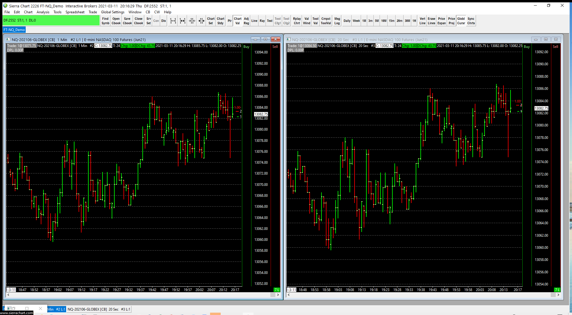 Hi, Please refer to the 1-minute (left) and 20-second chart below for your information: http://www.sierrachart.com/image.php?Image=1615511792223.png  |