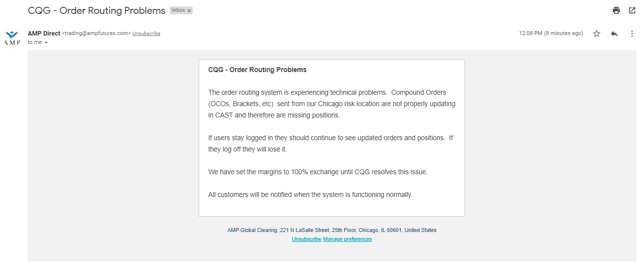 Email from AMP regarding CQG: CQG - Order Routing Problems