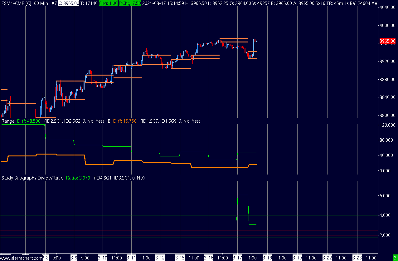 I've put on a chart a Study Subgraphs Divide/Ratio that measure the Ratio beteween the above indicators but unfortunately it doesn't go back in days... it plots only today... but it has all the data it needs... what could be the problem? I just need plotting the ratio between the 2 indicators here the image http://www.sierrachart.com/image.php?Image=1616012501587.png tks regards  |