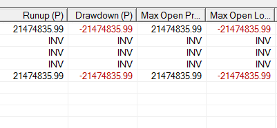 Hi, I am seeing INV and junk numbers under the MAE/MFE stats in my activity log. I am trading via OEC, live. Its pretty important as I export these figures to Excel for my trading stats. Thanks, Steve |