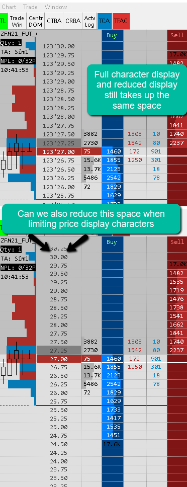 I limited the price display on my DOM but this doesn't reduce the space taken by the price scale. I want to squeeze the price scale smaller to take up less space, can this be done? |
