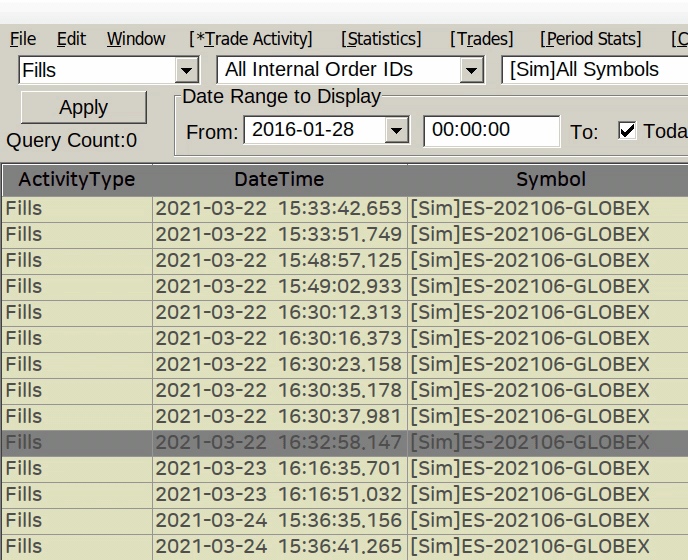This is all well documented: Trade Activity Log: Importing and Exporting Data Sierra Chart Support - Engineering Level Your definitive source for support. Other responses are from users. Try to keep your questions brief and to the point. Be aware of support policy: https://www.sierrachart.com/index.php?l=PostingInformation.php#GeneralInformation For the most reliable, advanced, and zero cost futures order routing, *change* to the Teton service: Sierra Chart Teton Futures Order Routing |