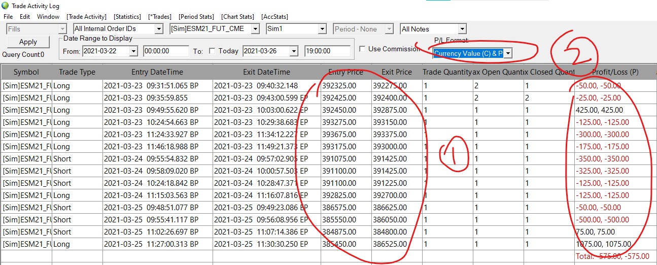 Hi there, I am one of the user that switched my order routing from TT to SC Data-All Services this week. Upon switching, I realized that there are issues with my stats. 1. My enter and exit prices for ES contracts are displayed in 5 digits instead of 4 (eg. 39100 vs 3910), very weird. 2. I cannot display my stats in points, and everything is stuck in currency. May I ask what can I do to fix this? Regards Chin |