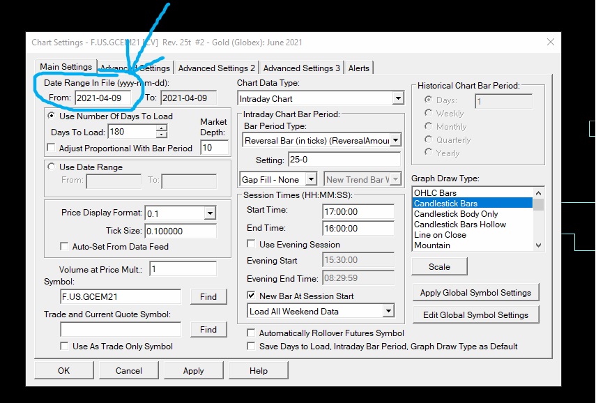 Can not adjust the Date Range in the Chart settings for my Assets (futures) It only shows the current day. When i try to change the "FROM" date and hit Apply it changes it right back. I deleted all the stuff in the data folder, no fix then I even uninstalled the application and reinstalled and it still didn't fix. Currently I am only able to see 1 Day activity and not even 1 complete day. Its not pulling any data from history. like 1 month back (or even 1 day)etc.. I have attached screenshots. Please help me figure out how to adjust this. I cant use anything chart wise, profile ETC. Thanks Ryan P.S. Strangely when i connect with Sierra Denali IM getting More data than when i use CQG (6 weeks vs current day), but i dont get more than a few weeks and i still cant change the Date Range. I am using CQG data at the current moment due to the account i am trading actively at this time - (even know it shows do have Sierra Denali Im not currently trading that account that is hooked to that data) Date Time Of Last Edit: 2021-04-10 16:01:05