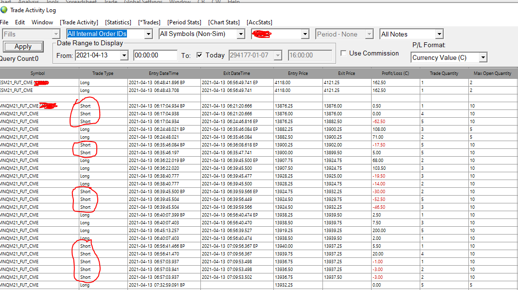 I ran the report several times on the Trade Activity log "Trades" tab and "Statistics" and it is showing that there were short trades for today 4/13 (entered today and exited today). I did not make any short trades, all of them should be long. Can you please check on that? Thank you for your help.