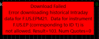 Hello Since a couple of days, It fails to download the Data on my plattform. As attachement, i am sending you a screenshot of the errormessage. I also have the Log File, but as the Support Board is public i dont know if i should opload it here (is there confidential text in the log file?).. I have already tried the following: Edit >> Download Data For All Historical Charts Edit >> Delete all Data and Download Edit >> Download Data for all Historical charts I have then contacted the Broker (I have the CQG Datafeed via the Broker). The Broker told me that the Historical data are provieded by the plattform. So they saied i have to contact you. Thanks Very Much! Best regards Roger |