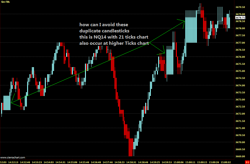how can I avoid these duplicate candlesticks this is NQ14 with 21 ticks chart also occur at higher Ticks chart http://www.sierrachart.com/image.php?l=1394399693782.png |