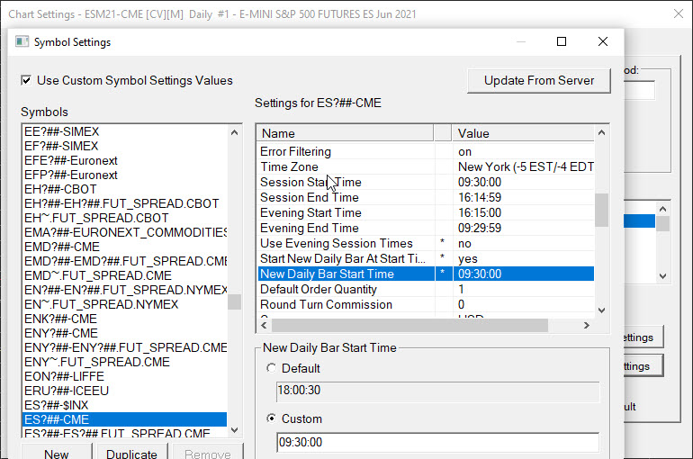 Refer to the information here: Historical Chart Prices: 12.6 - Always Beginning Historical Chart Bar at Specified Time According To Symbol For the most reliable, advanced, and zero cost futures order routing, use the Teton service: Sierra Chart Teton Futures Order Routing |