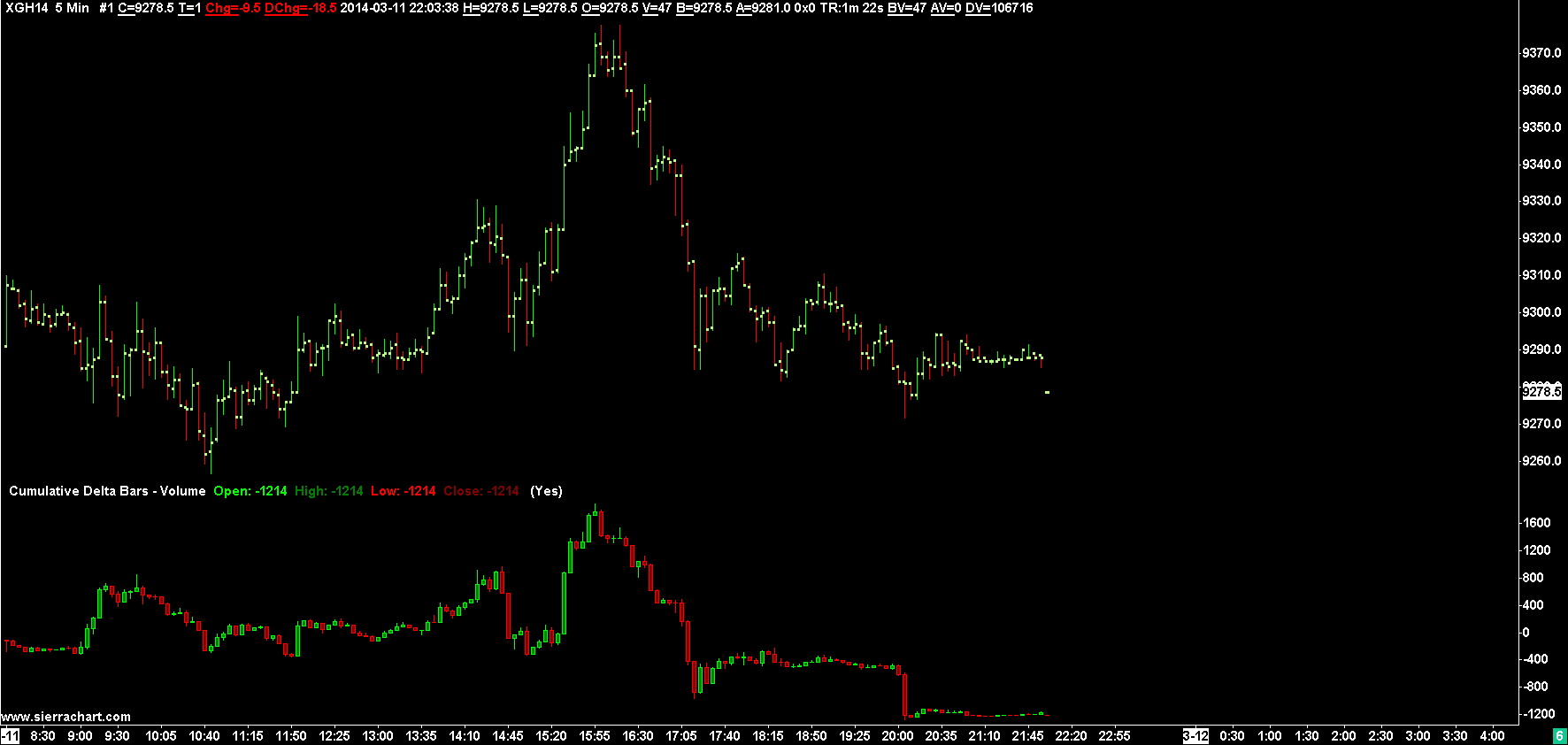The comparisons we have done between the Sierra Chart EUREX data feed and IQ Feed use the Cumulative Delta Bars study. Here is a comparison for today: http://www.sierrachart.com/image.php?l=1394583608794.png (IQ Feed) http://www.sierrachart.com/image.php?l=1394583312848.png (Sierra Chart data feed) To us in these particular charts, the Sierra Chart data feed produces a more "reasonable" result. This is not always the case on different days. Sometimes it looks as though at certain points in the chart IQ Feed looks like it is a more reasonable result. But overall, the two graphs are very similar to each other. Will be providing more details, later in the evening. The main point is that Sierra Chart data feed uses up ticks and down ticks to identify ask traded volume and bid traded volume. We described this in the thread linked below. This is the only 100% stable and consistent method that can be applied to EUREX data. There is another technique we could use and we will comment on that. This is the original discussion thread: Technical Discussion: EUREX Bid Volume and Ask Volume And for the record, what you are talking about is data derived off of the data feed and not actual exchange data. The last trade, bid, ask prices and volume data provided by the Sierra Chart data feed is 100% perfect. It is provided as it is from the exchange and there is no room for any error here. Your comments cannot be considered fair because what you are talking about is data that is derived from the data feed which cannot be reliably done with EUREX. This has been very well established by us in our technical discussion. Sierra Chart Support - Engineering Level Your definitive source for support. Other responses are from users. Try to keep your questions brief and to the point. Be aware of support policy: https://www.sierrachart.com/index.php?l=PostingInformation.php#GeneralInformation For the most reliable, advanced, and zero cost futures order routing, *change* to the Teton service: Sierra Chart Teton Futures Order Routing Date Time Of Last Edit: 2014-03-28 08:01:36