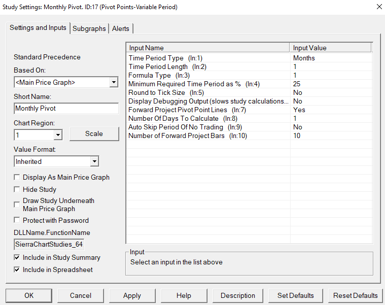 You have the Number of Days to calculate set to 1. It needs to be at least the amount of time for which you want the Pivot Points to cover (so at least 31 days to cover a full month). Also make sure you chart has at least the same amount of data loaded. For the most reliable, advanced, and zero cost futures order routing, use the Teton service: Sierra Chart Teton Futures Order Routing |