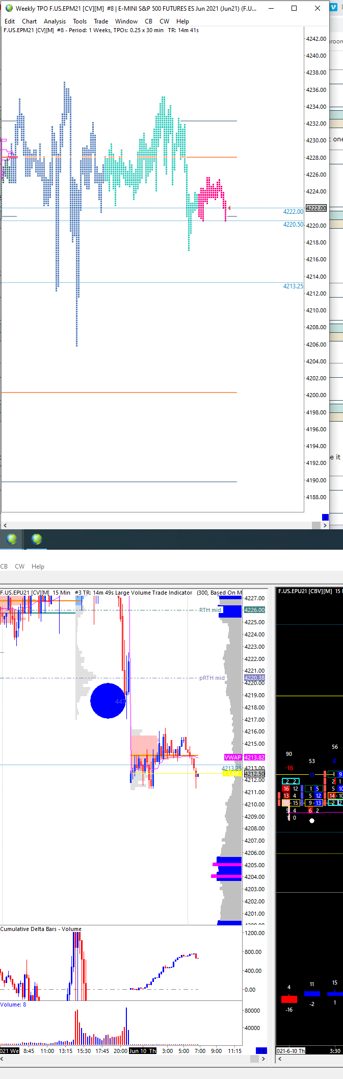 The charts are set to different contract months. These are also continuous futures charts. So therefore refer to: Continuous Futures Contract Charts: Displaying Rollover Transition Times and Contract Months Sierra Chart Support - Engineering Level Your definitive source for support. Other responses are from users. Try to keep your questions brief and to the point. Be aware of support policy: https://www.sierrachart.com/index.php?l=PostingInformation.php#GeneralInformation For the most reliable, advanced, and zero cost futures order routing, *change* to the Teton service: Sierra Chart Teton Futures Order Routing |