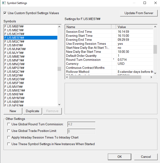 Enable Global Round Turn Commissions and enter a value of 0 in the field instead of 4.2 (i.e. remove the value in that field). Then disable the Global Round Turn Commissions. Select OK to close the window. Let us know if that resolves it. For the most reliable, advanced, and zero cost futures order routing, use the Teton service: Sierra Chart Teton Futures Order Routing Date Time Of Last Edit: 2021-05-05 18:44:51