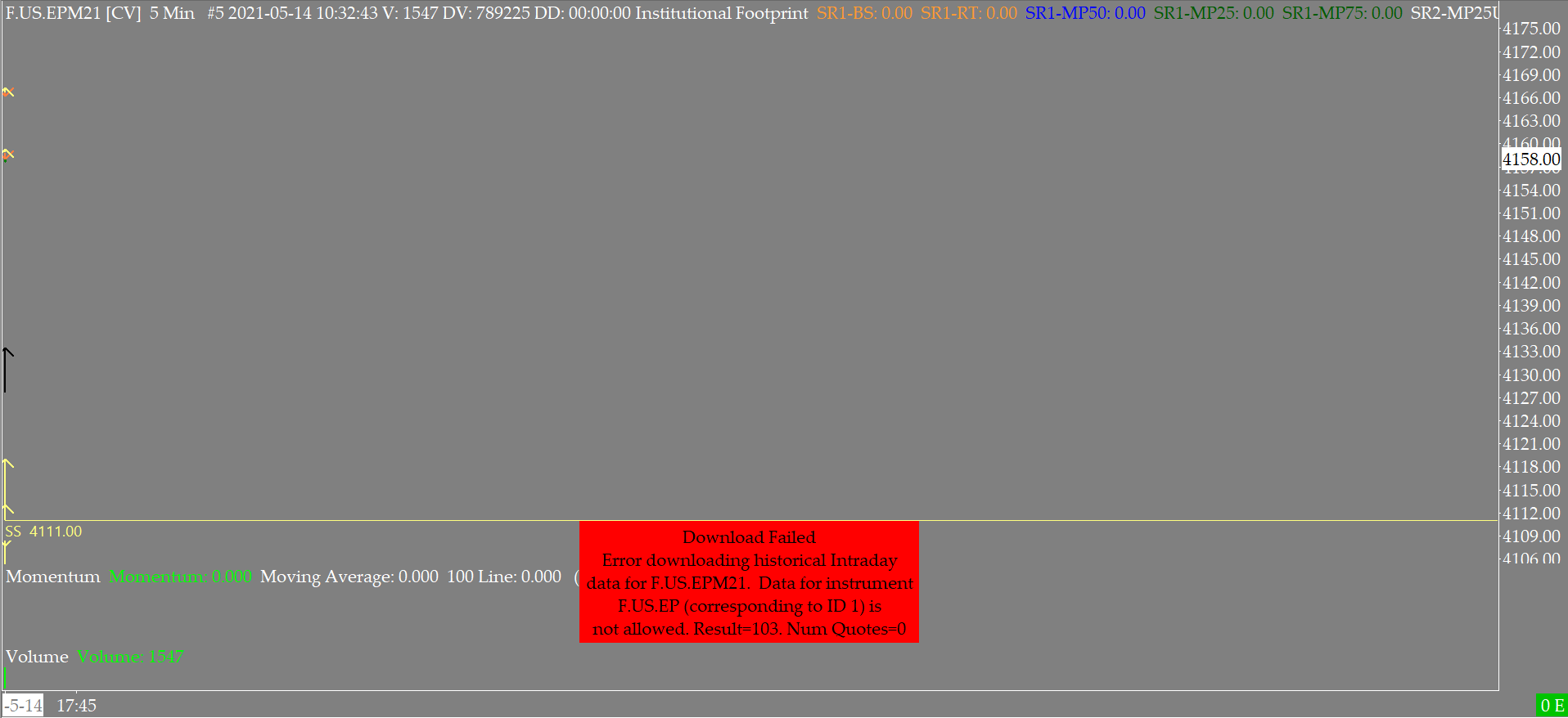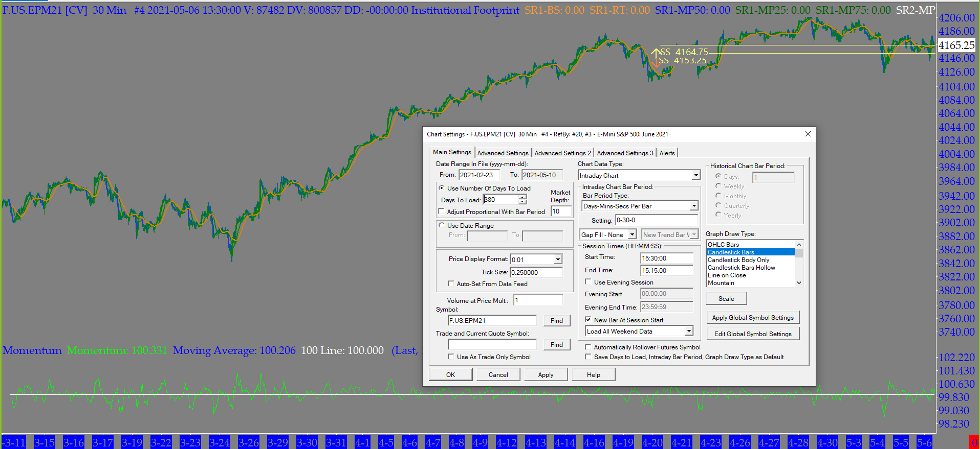 I can go back 10+ years on my daily chart, but on my 30 minute intraday chart I only get the month of May. When I do a delete all data and download on the intraday chart sometimes I get 3 weeks and sometimes I get 3 days. I need at least 28o days of historic data on my intraday chart. https://www.sierrachart.com/Download.php?Folder=TicketingSystem&download=50846 |