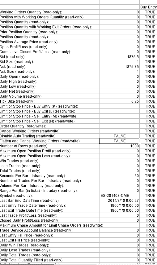 I am starting a new spreadsheet for some reason I have buy entry evaluate to true but it won't buy. Any reason for that? I can't think of why. -disable auto trading= false -flatten and cancel working orders=false -auto trading enabled -my chart is showing correct buy signal arrows -it's a simple trigger |