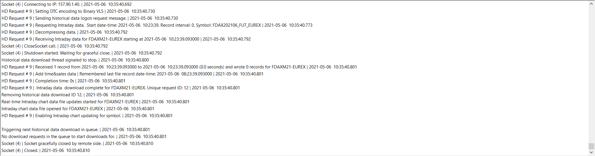 Hello, I do not see any data coming through to my feed, since 10:23 (CET). Im attaching the screenshot of when the last 150 trades candle got stucked, my DOM is also frozen. ALso I attached the image of the Message Log. I restarted Sierra as well, same situation. Thanks |