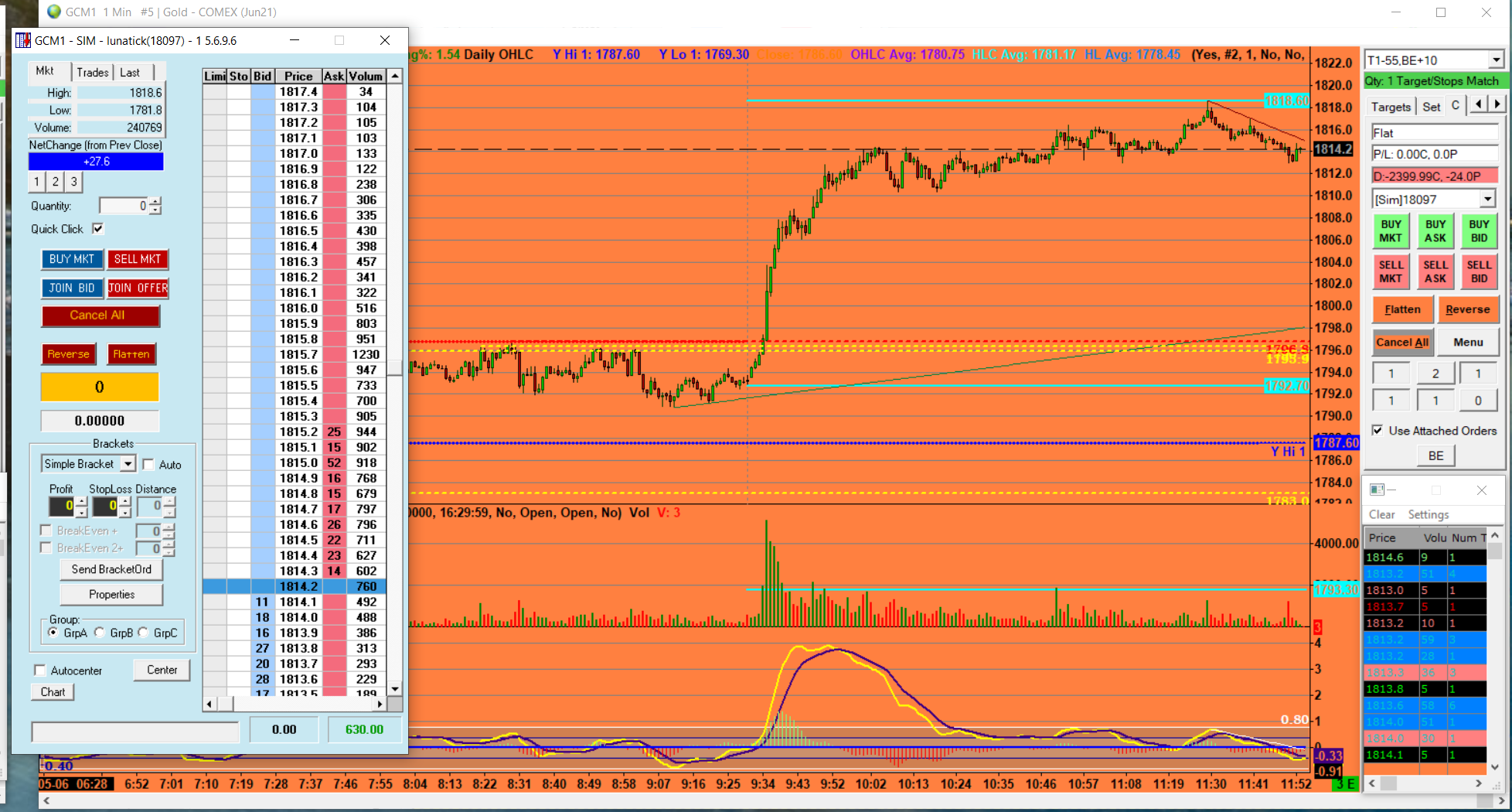 Dear Sirs; The daily Profit and Loss is very different from Sierra Chart trading vs the Dome in GC . Chart trading P/L is $ - 2399.99 ; the Dome is $630.00 . ( the dome is correct ) I am trading in Sim and this has been going on for 3 days . Please correct this malfunction . Thank you. see attached: regards, Joe |