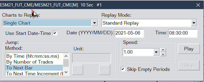 As I have said in the post 5 above: 4- no depth data shown on the chart i.e. it does not go to a time before the loaded data. It might be that as data was loaded for 4 days in the above example, it did not show days before 2021-05-06 (as shown in the chart you have mentioned) after asking to reply 2021-04-6. There could be an option somewhere that would re-load the chart on the day of replay that I do not know about. In the post 7 above I think I have tested the above hypothesis which you can simply do as well by following the steps. |