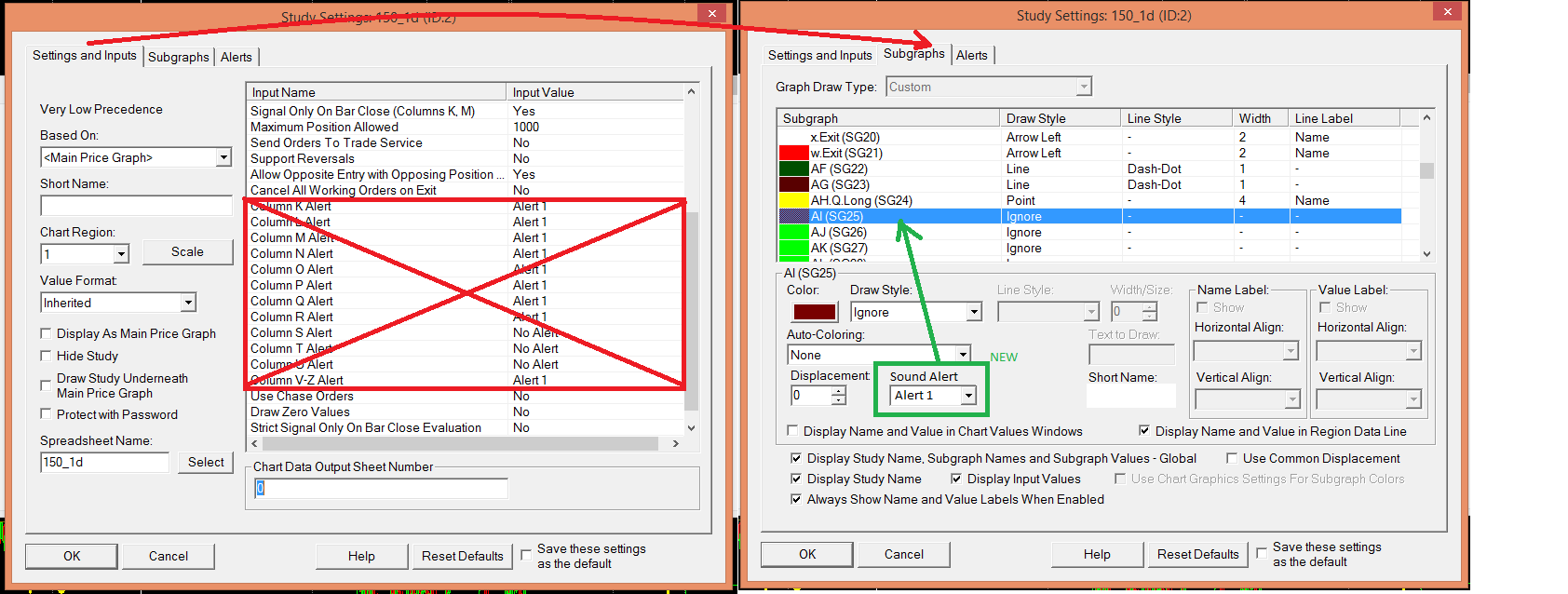 Hello SC team, in a study "Spreadsheet System for Trading" currently there are up to 60 "number of formula columns", but settings for "Alert columns" restricted up to Z column. I have no chance to disable sound alert if I have in column AI=C3+10 and want just to show its value on a chart. Today, on each bar it's recognized as not false and triggers sound alert. Basically I can't use full power of 60 formula columns.. Please see attached screenshot for what I mean. (edited: I found I reported this already sometime ago in this topic: remarks on new non-.net platform but here I'm talking about .NET platform) Could you please consider to upgrade this. Thank you very much! Date Time Of Last Edit: 2014-03-11 21:34:10