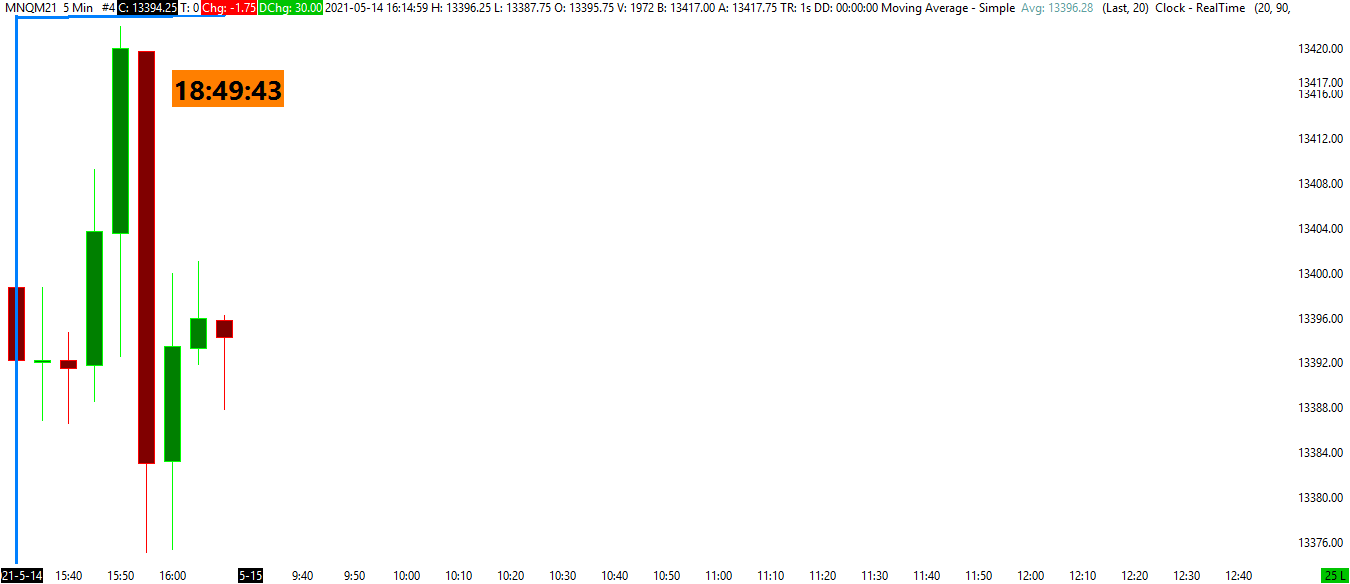 First - Yes, you can use the Denali Exchange Data Feed and trade through Gain Capital. Check the Session Times for the MNQ chart to ensure that they are set properly, along with the number of days to load. Refer to the following: Chart Session Times If this is a data issue from Gain Capital, then we can not say what the issue may be. You can try Edit >> Delete All Data and Download to see if that will resolve it. In the end, we really do recommend using the Denali Exchange Data Feed instead. For the most reliable, advanced, and zero cost futures order routing, use the Teton service: Sierra Chart Teton Futures Order Routing |
