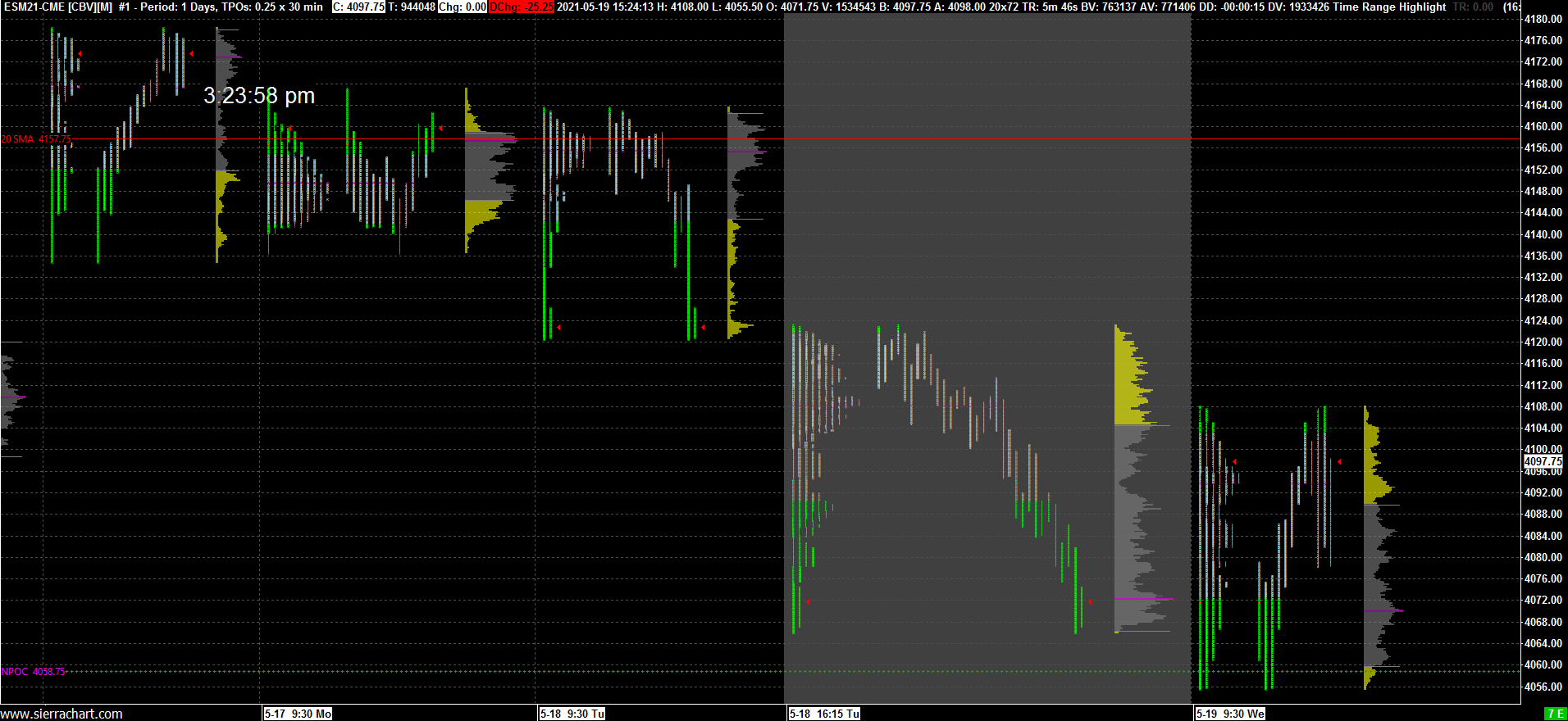 I understand what you are saying and what I sent you might have had the last profile on show both standard and own column. But that is not my issue. Let me give you some examples of what is going on. 1. Right click on last profile and pick both standard and own column. it switches too that (exactly what is expected) then right click on it again and hit the same thing to basically uncheck it. That does not work stays exactly as it is and is still checked. that has never happened to me before. 2. go to next profile over which is the last overnight profile. I right click and hit letters/block in own column. it switches too that (exactly what is expected) but when I right click again and uncheck what happens next is it then reverts to two profiles one standard and one own column. very strange. again this has never happened before. been using these tools for years and this is different. If you are not able to recreate it with my chartbook on your system then let me know I can try and make a video of it maybe. What does reset tpo chart do for me??? Thanks, Doug Date Time Of Last Edit: 2021-05-19 18:05:14