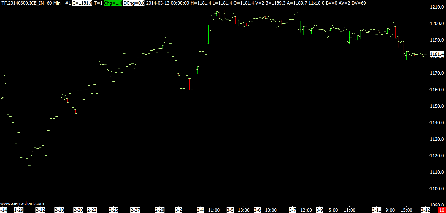 No open expired contracts. The TF and DX both were opened by themselves no chartbook and no other contracts. I'm opening these 2 contracts new after deleting all data files for them. This is for the June contracts. They don take long to load The data on the TF is not complete. It does go back into December but it's not showing every trading day. It skips all around. For example goes from 02/03t/14 to 02/11/14. |