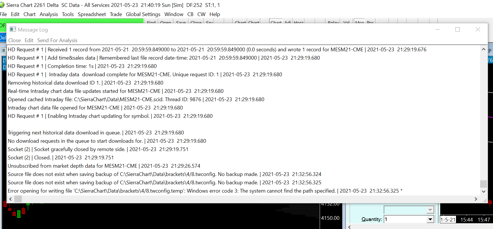 Sierra Chart Support - Engineering Level Your definitive source for support. Other responses are from users. Try to keep your questions brief and to the point. Be aware of support policy: https://www.sierrachart.com/index.php?l=PostingInformation.php#GeneralInformation For the most reliable, advanced, and zero cost futures order routing, *change* to the Teton service: Sierra Chart Teton Futures Order Routing |