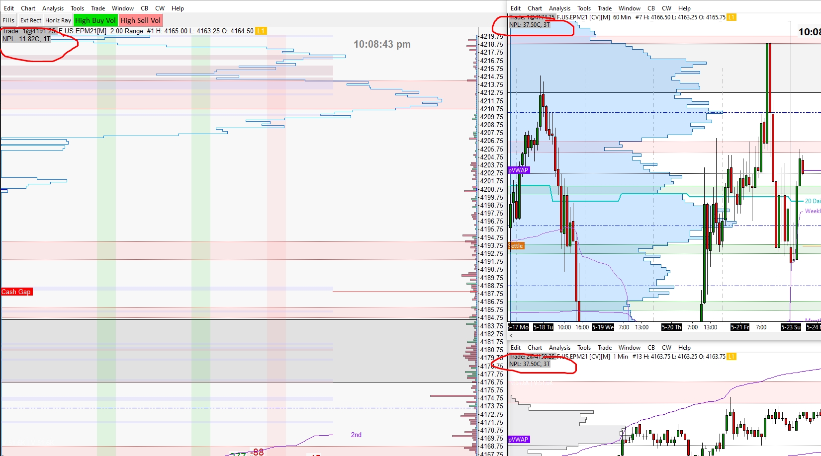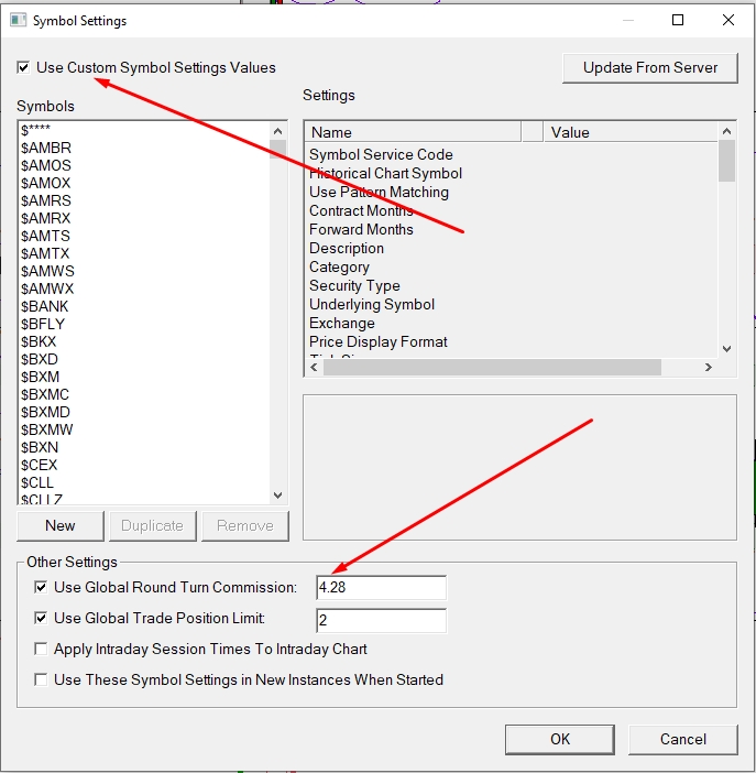 Hi I got the global symbol settings set so it automatically takes into account the $4.28 commission I pay per ES RT contract when it displays my p/l on my charts. But for some reason some charts are displaying my daily p/l with and some without commissions. I have gone over chart settings, trade settings, etc for individual charts (not under global) and cannot find why this is happening where all my charts that are on trade mode do not reflect the true p/l with commissions taken out if I have it set for that. Out of 8 charts I have on trade mode about half have this problem. Thanks |