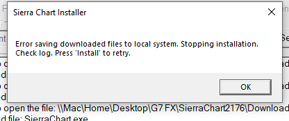 Use the zip installer: https://www.sierrachart.com/downloads/ZipFiles/SierraChart2261.zip Extract the files to your Sierra Chart installation folder. Let us know if you need help determining this folder. Do this when Sierra Chart is not running. Sierra Chart Support - Engineering Level Your definitive source for support. Other responses are from users. Try to keep your questions brief and to the point. Be aware of support policy: https://www.sierrachart.com/index.php?l=PostingInformation.php#GeneralInformation For the most reliable, advanced, and zero cost futures order routing, use the Teton service: Sierra Chart Teton Futures Order Routing Date Time Of Last Edit: 2021-05-25 07:11:31