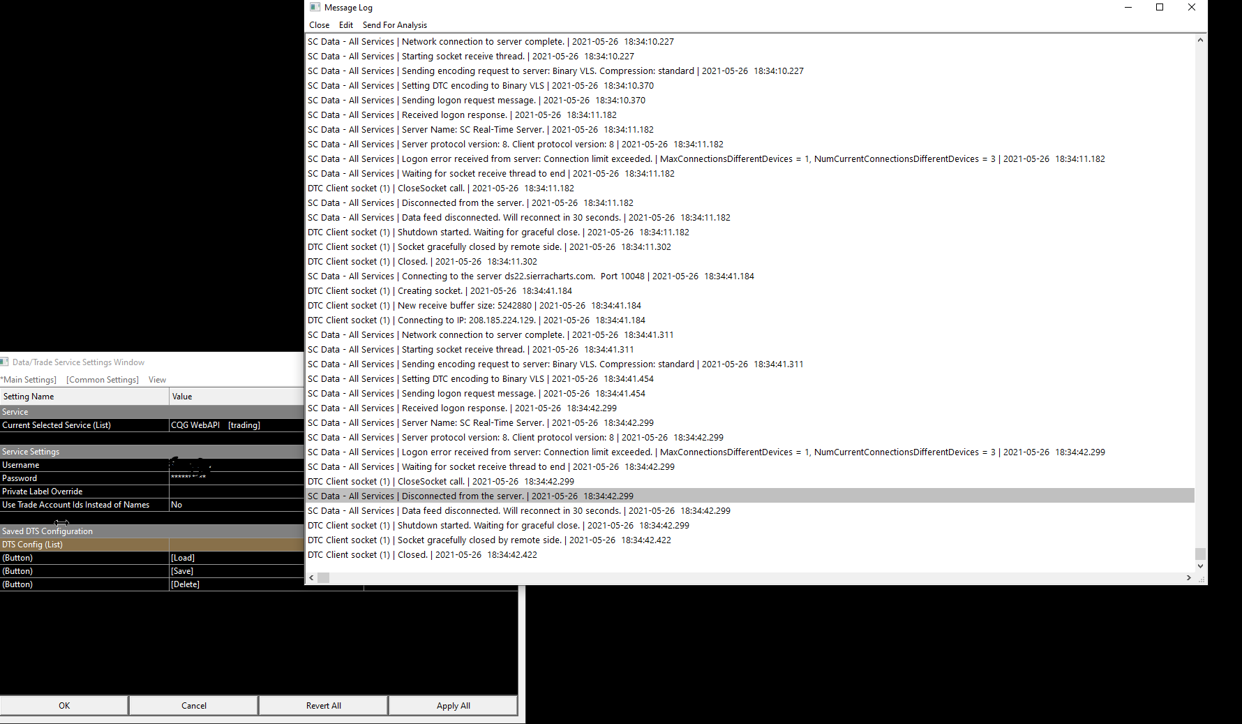 I did exactly how you said. Now I run Sierra only on two PC with two different data feed, but I still reieve this message log on the my second connection, even when data feed is different. What can be the problem? https://www.sierrachart.com/Download.php?Folder=SupportBoard&download=51351 |
