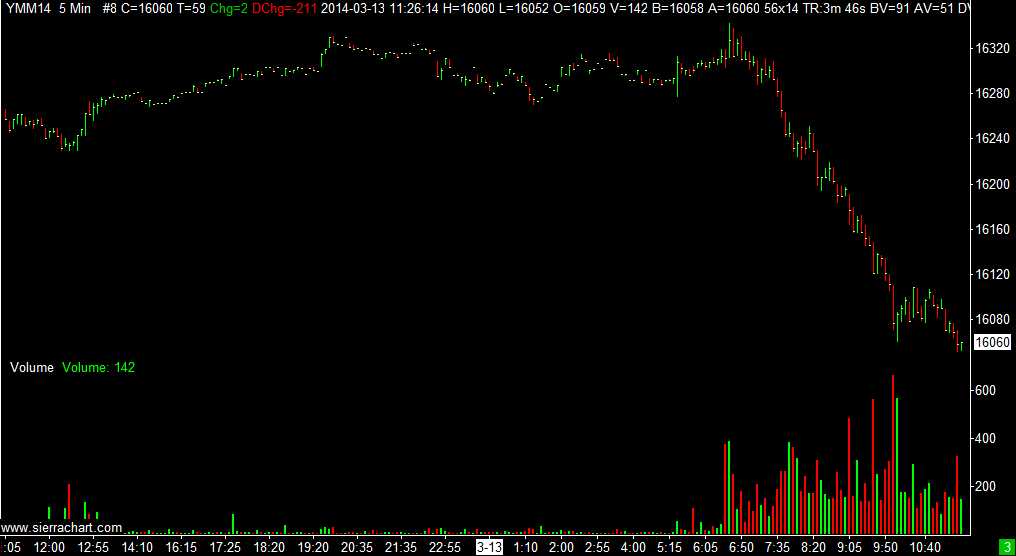 The Continuous Futures Contract feature should work very well with little trouble. Open a chart for YMM14 and provide an image of it: https://www.sierrachart.com/index.php?l=PostingInformation.php#Image Sierra Chart Support - Engineering Level Your definitive source for support. Other responses are from users. Try to keep your questions brief and to the point. Be aware of support policy: https://www.sierrachart.com/index.php?l=PostingInformation.php#GeneralInformation For the most reliable, advanced, and zero cost futures order routing, *change* to the Teton service: Sierra Chart Teton Futures Order Routing |