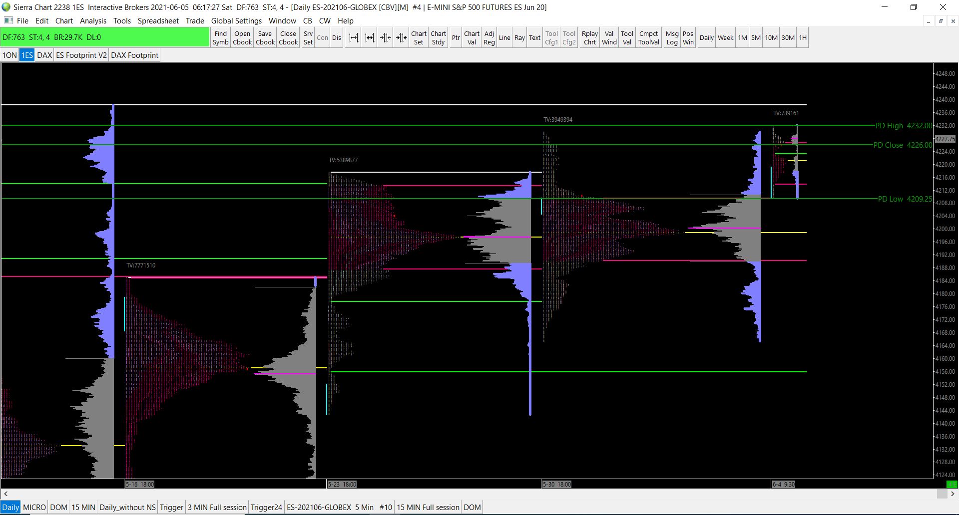 Hello there, I have a qestion on merging weekly profiles. I have a daily chart on the ES that tracks the price on a daily basis. When the day is over a new market profile starts. When the week is over I merge Monday-Friday together to identify weekly lows/highs. (see attached screenshot) My question is now if it is possible to merge for example 4 weeks together to display the monthly profile but then to unmerge them again to have the 4 weeks profiles separately? My difficulty is that I only see the option to either unmerge all profiles that would give me 30 separate day profiles or to just unmerge to most left or right daily profile. Thanks |