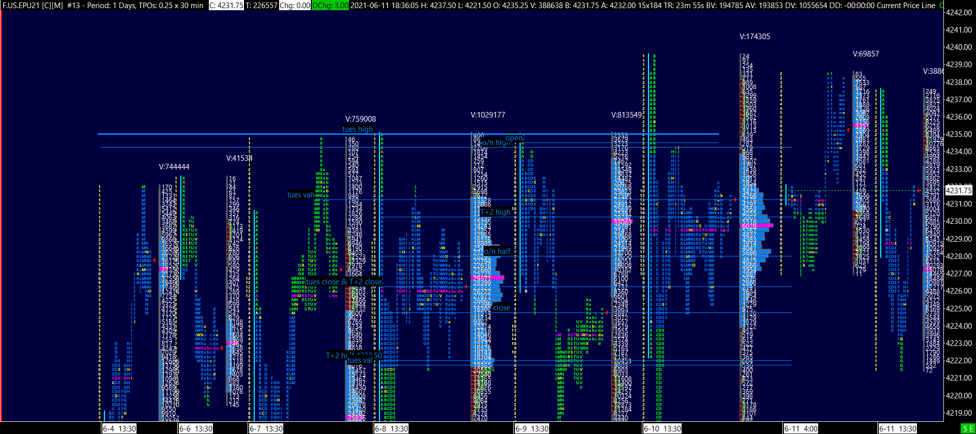 Follow these instructions to setup the TPO: Time Price Opportunity (TPO) Profile Charts: Basic Instructions Then add a Volume by Price without making any changes to the study by following these instructions: Volume By Price Study: Step By Step Instructions That should get you the basic setup. Then, if you want to have the TPO periods in their own column, refer to the instructions here: Time Price Opportunity (TPO) Profile Charts: Displaying TPO Letters/Blocks for Subperiod in Own Column For the most reliable, advanced, and zero cost futures order routing, use the Teton service: Sierra Chart Teton Futures Order Routing |