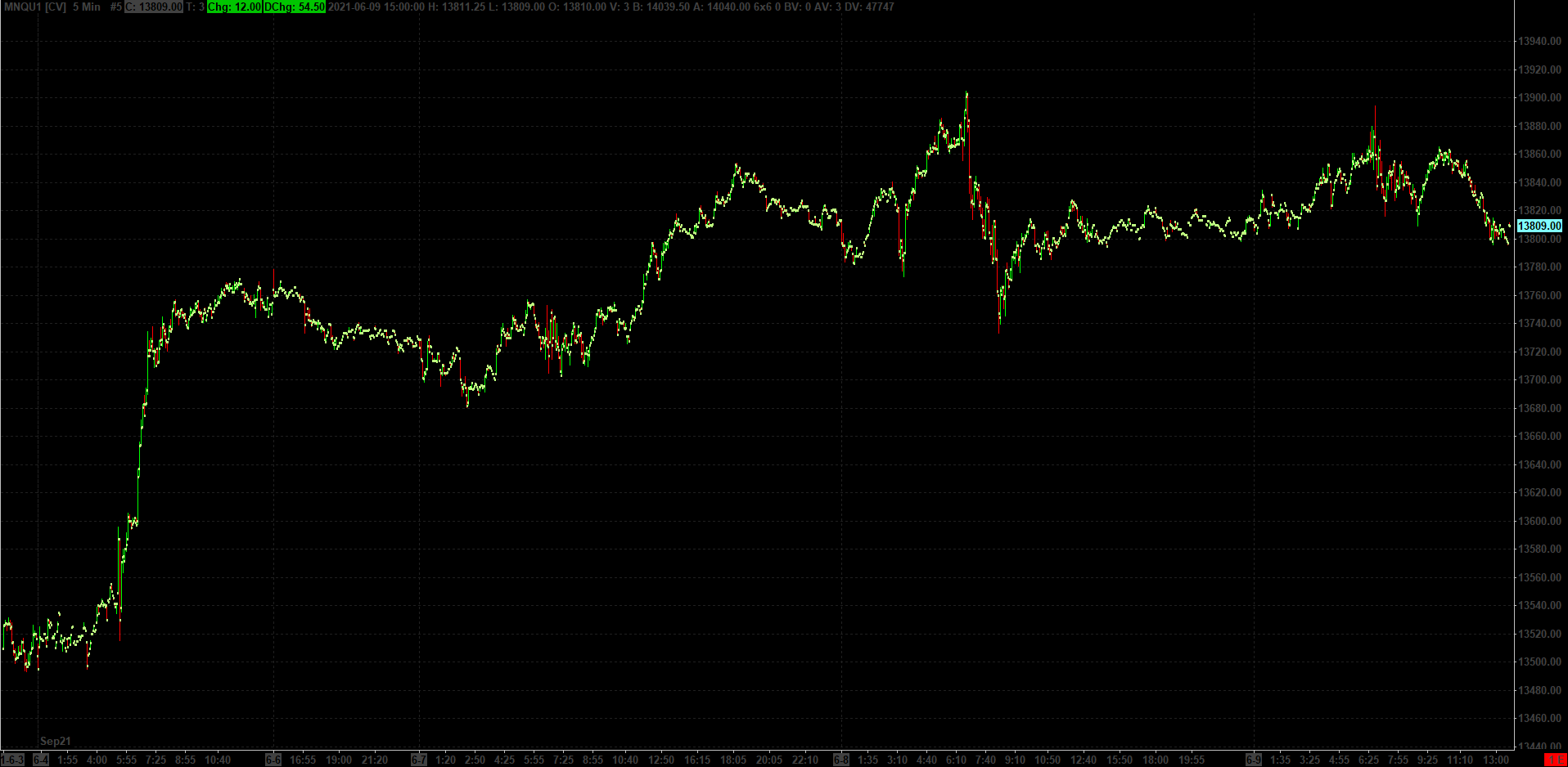 Hello, when i use the contract rollover function, the tick/trades data does not completely appear for 6/4 through 6/9. I am loading 15 days of data for the micro NQ on the Sept contract(MNQU1). When i change the chart to any time based period, the data for those dates will load. I have tried 'Delete all data and download' and it did not change the results. Please advise. Thanks