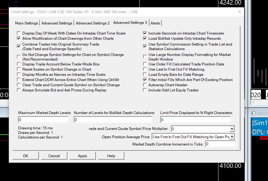 I've been using Sierra Chart for quite a while now. I can't seem to solve the issue below: I'm using two chartbooks. Both Chartbooks have the /ES set at 500 ticks. Both chart settings are identical (same start time, end time, aggregation period, etc.). However, it seems that one chartbook is receiving more data/volume than the other, and as a result, the tick charts are not identical. Where should I look to troubleshoot this? |