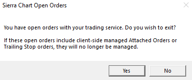 I keep getting the attached "Sierra Chart Open Orders" message for the 2 sub instances when exiting Sierra. However, I have no open order and I also checked with broker....no open orders. The curious thing is that I get the message on 2 sub instances (when I exit) also and I don't trade on both sub instances. The main instance does no give the open orders message. I don't know how to get this message cleared. it seems to have started with the update to version 2270. Please help. Date Time Of Last Edit: 2021-06-15 19:45:37